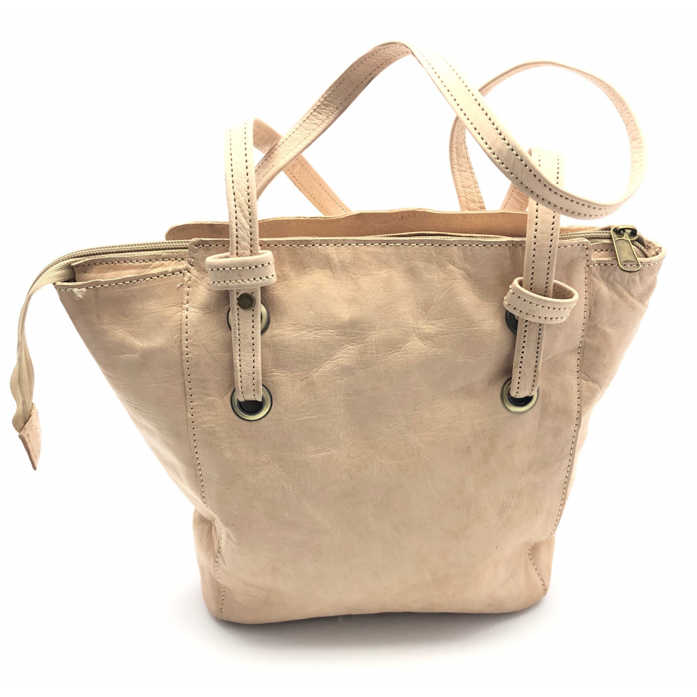 Elegantní a jednoduchá kožená dámská kabelka svým zpracováním nadčasová, nepodléhá módním trendům a tak si najde určitě místo ve Vašem šatníku na dlouhou dobu. Kabelka je ručně šitá z jemné kůže. Kabelka je hladká, má středně dlouhé uši (délka 26 cm), které jsou ke kabelce připevněny přez ozdobné kroužky v kabelce. Uvniř je kabelka s podšívkou a zavíráním na zip.