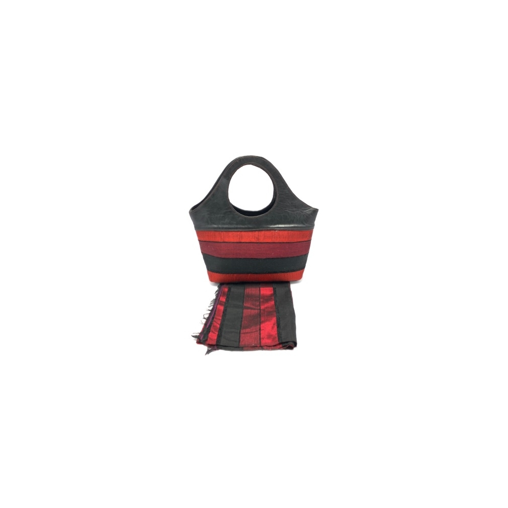 Dámská kožená kabelka oblouk se šátkem červeno-černá MagBag