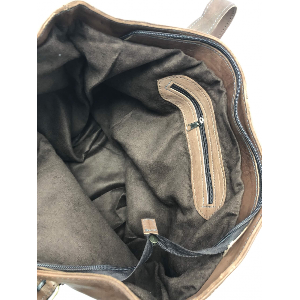 Jednoduchá a přesto elegantní kožená dámská kabelka ve tvaru obdelníku, zapínání na zip. Kabelka má dvě uši na přezky, kterými je možno mírně korigovat délku úší (max délka je 30 cm). Uvnitř je řešena jako jeden velký prostor, kam se vejdou pohodlně všechny Vaše věci, na zadní straně kabelky uvnitř je malá kapsička na zip na drobnosti nebo věci, které chcete mít oddělené. Kabelka je z příjemné měkké hovězí kůže ručně barvené.