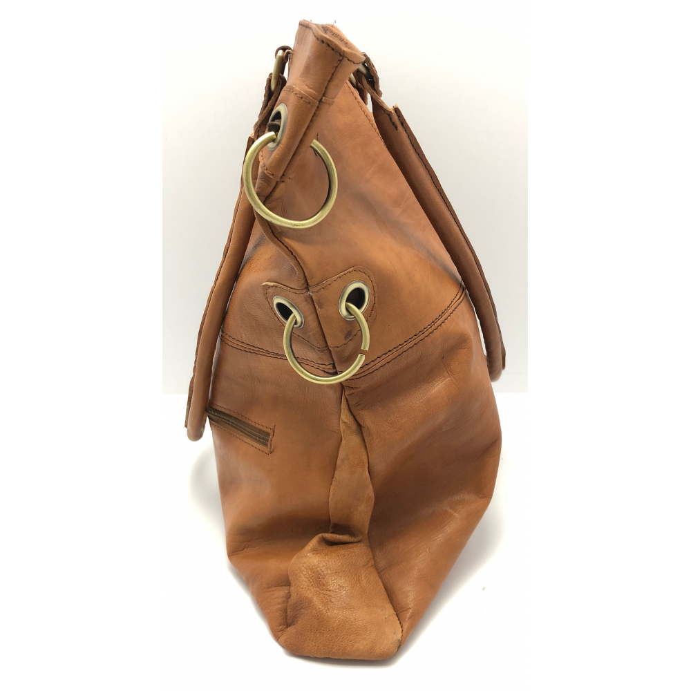 Dámská kožená kabelka s kroužky přírodní
