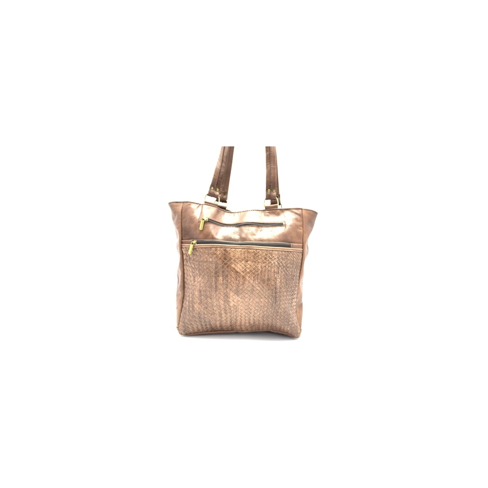 Dámská kožená kabelka obdélníkového tvaru na dvě středně dlouhé uši (25 cm délka uší). Kabelka je vyrobena z příjemné měkké hovězí kůže. Kabelka má na přední straně proplétaný vzor, z venku dvě kapsy na zip, kam si pohodlně schováte Vaše drobnosti nebo cennosti. Kabelka je uvnitř podšívková a na zadní straně má malou kapsičku na zip, kde si uložíte drobnosti a jiné menší věci. Nahoře je kabelka zapínací na zip.