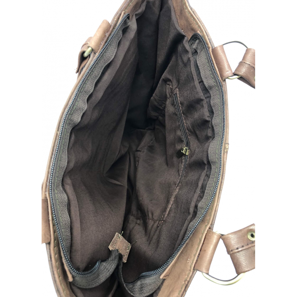Dámská kožená kabelka s propletenou kapsou na zip hnědá
