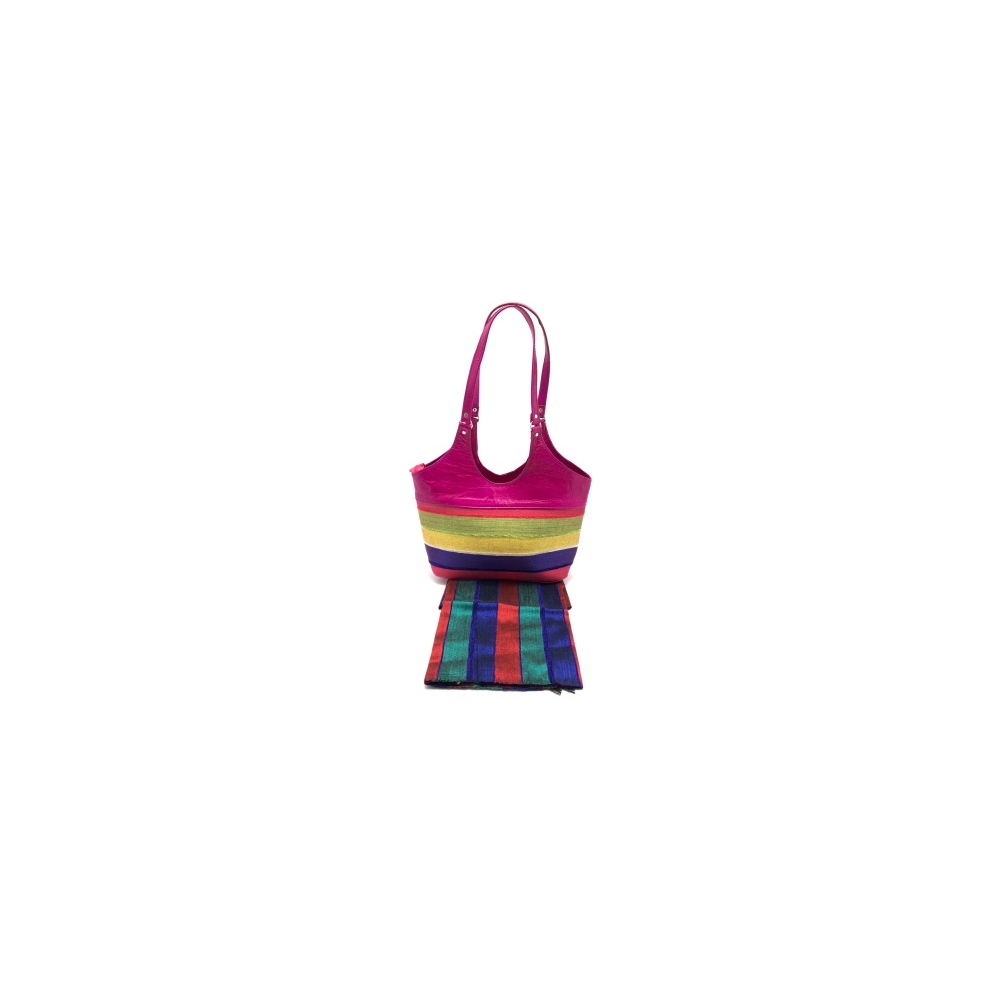 Dámská kožená kabelka se sátkem pruhovaná fialová