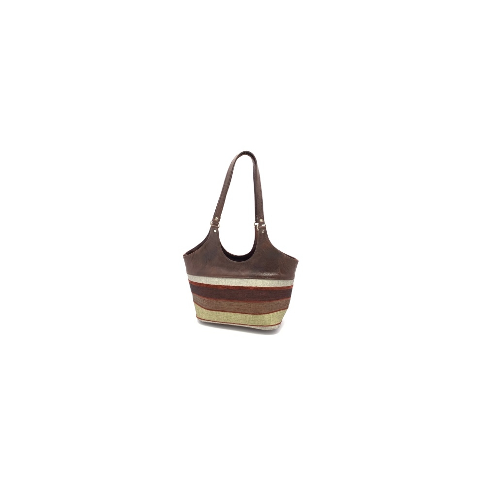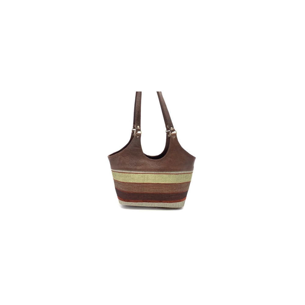 Dámská kožená kabelka se sátkem pruhovaná hnědá