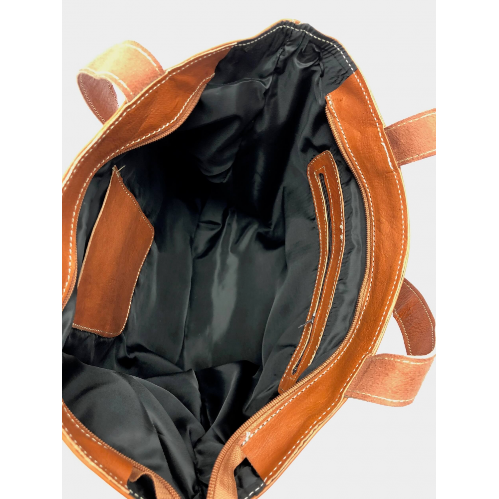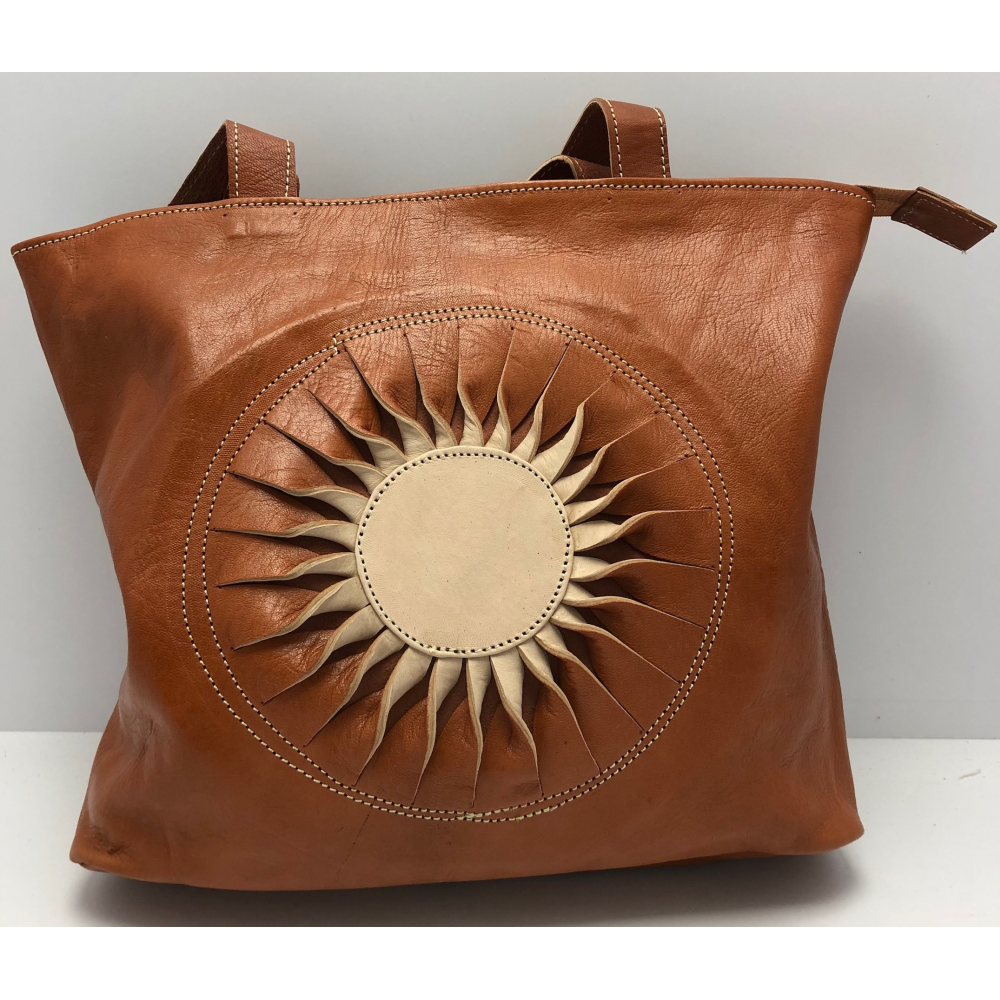 Kožená kabelka v předu s obrázkem sluníčka. Kabelka má dvě středně dlouhé uši (36 cm) nenastavitelné. Z venku na zadní straně je kapsa uzavírací na zip. Uvnitř je kabelka vypodšívkovaná a má na zadní straně malou kapsičku na zip a kapsičku na mobil.