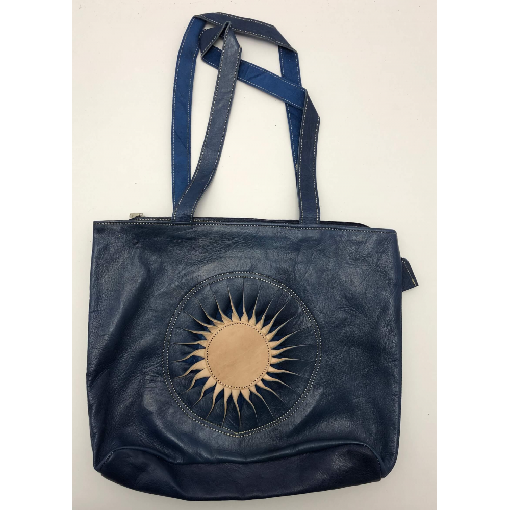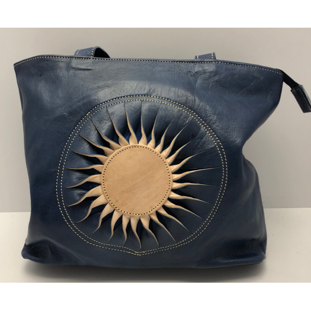 Kožená kabelka v předu s obrázkem sluníčka. Kabelka má dvě středně dlouhé uši (36 cm) nenastavitelné. Z venku na zadní straně je kapsa uzavírací na zip. Uvnitř je kabelka vypodšívkovaná a má na zadní straně malou kapsičku na zip a kapsičku na mobil.