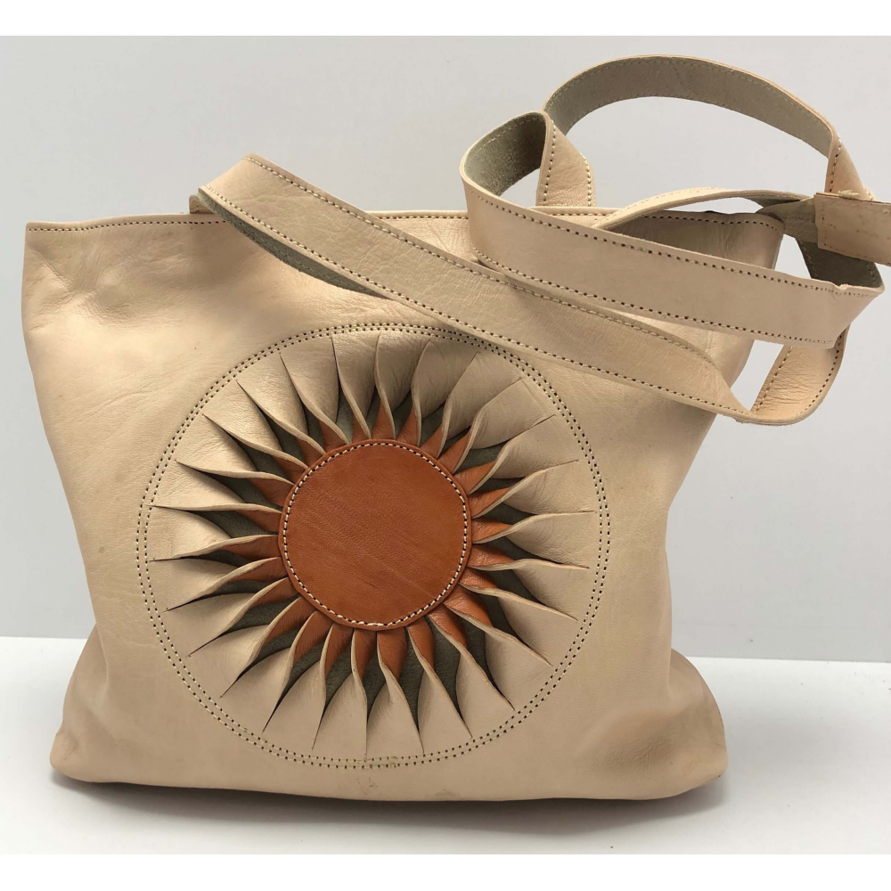 Kožená kabelka v předu s obrázkem sluníčka. Kabelka má dvě středně dlouhé uši (36 cm) nenastavitelné. Z venku na zadní straně je kapsa uzavírací na zip. Uvnitř je kabelka vypodšívkovaná a má na zadní straně malou kapsičku na zip a kapsičku na mobil.