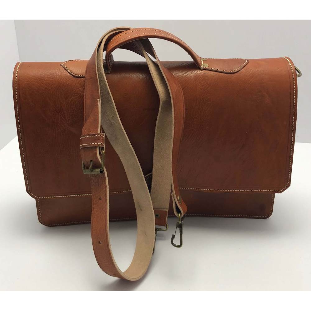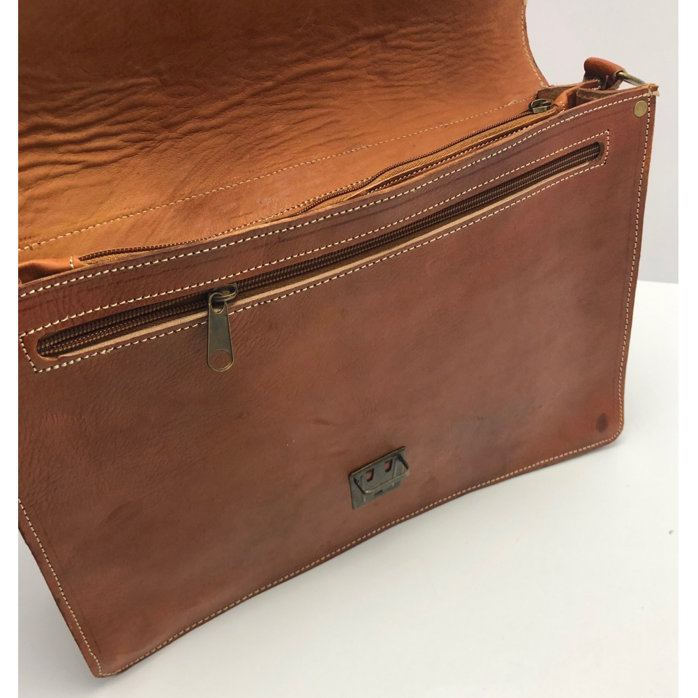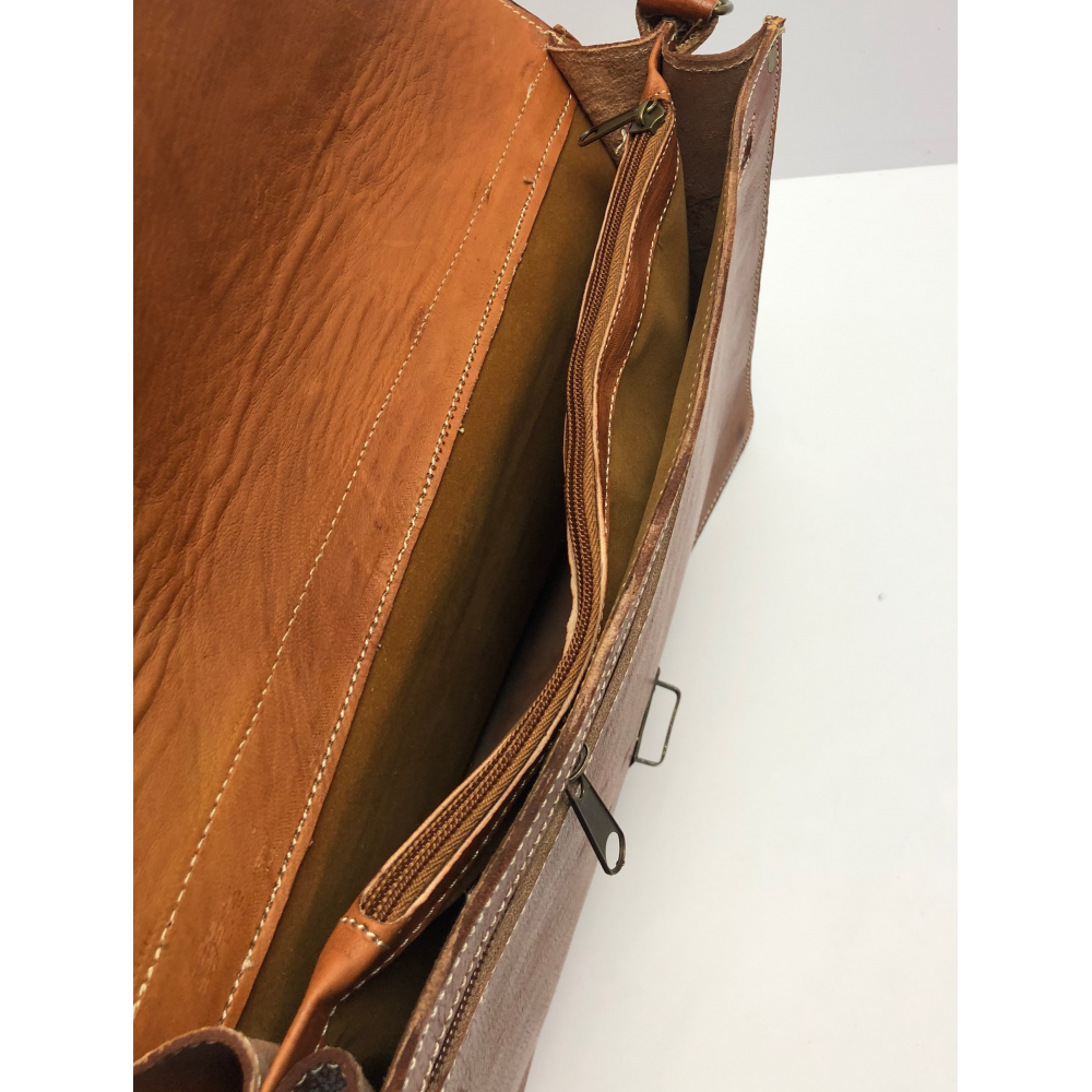 Pánská kožená aktovka ručně šitá, krásně zpracovaná. Akovka má krátké ucho pro dobrou manipulaci a dlouhé nastavitlé ucho (max délka 70 cm), aby se Vám pohodlně nosila i na rameni. Aktovka je zapínací na sponu. Na zadní části aktovky je kapsa na zip. Uvnitř má aktovka dvě přihrádky a jednu kapsu na zip pro uložní Vašich věcí a dokumentů.