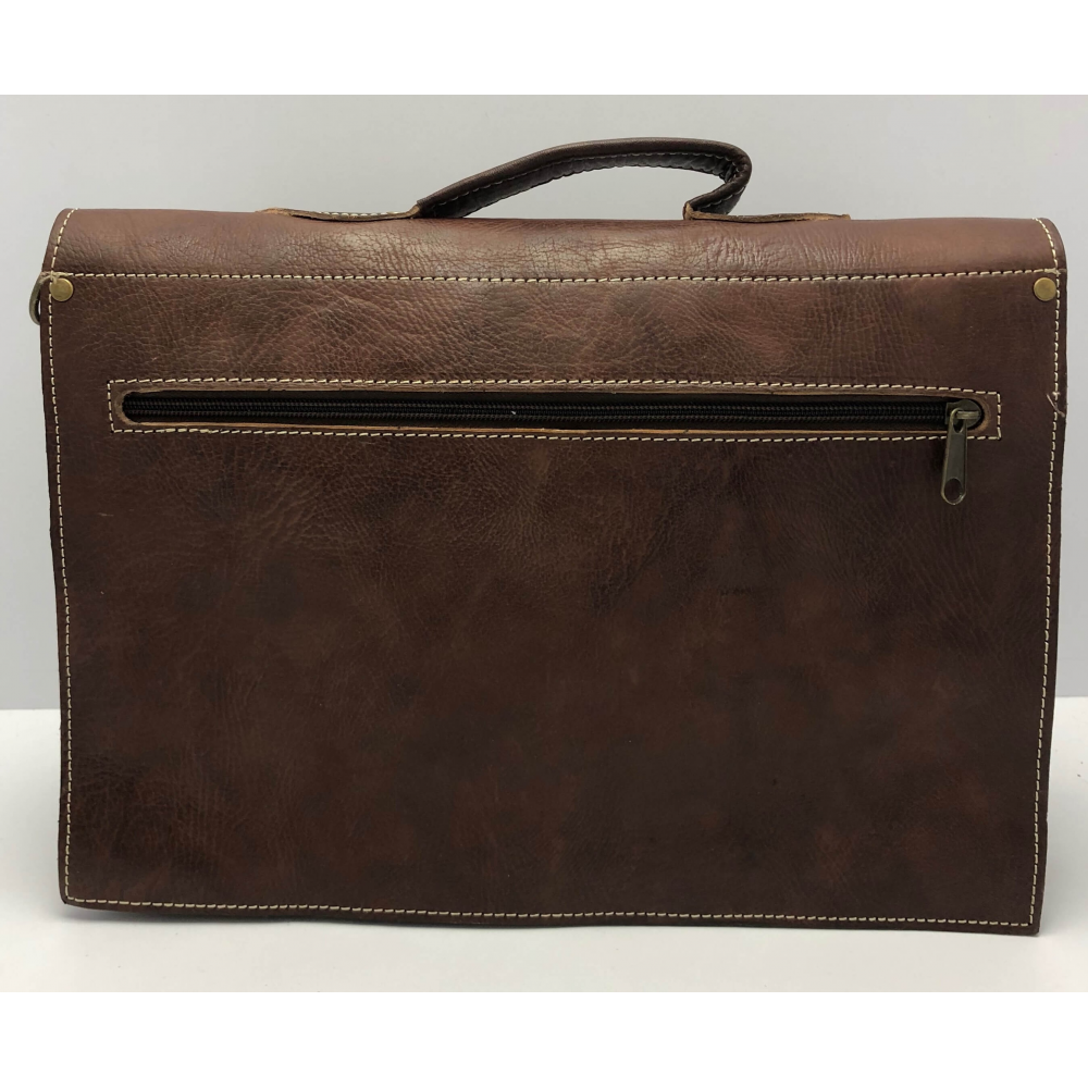 Pánská kožená aktovka ručně šitá, krásně zpracovaná. Akovka má krátké ucho pro dobrou manipulaci a dlouhé nastavitlé ucho (max délka 73 cm), aby se Vám pohodlně nosila i na rameni. Aktovka je zapínací na jednu přezku. Uvnitř má aktovka dvě kapsy pro uložní Vašich věcí a dokumentů. Ze zadní strany aktovky je velka kapsa na zip.