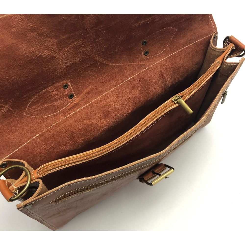 Pánská kožená aktovka ručně šitá, krásně zpracovaná. Akovka má krátké ucho pro dobrou manipulaci a dlouhé nastavitlé ucho (max délka 70 cm), aby se Vám pohodlně nosila i na rameni. Aktovka je zapínací na jednu přezku. Uvnitř má aktovka dvě kapsy pro uložní Vašich věcí a dokumentů. Ze zadní strany aktovky je velka kapsa na zip.