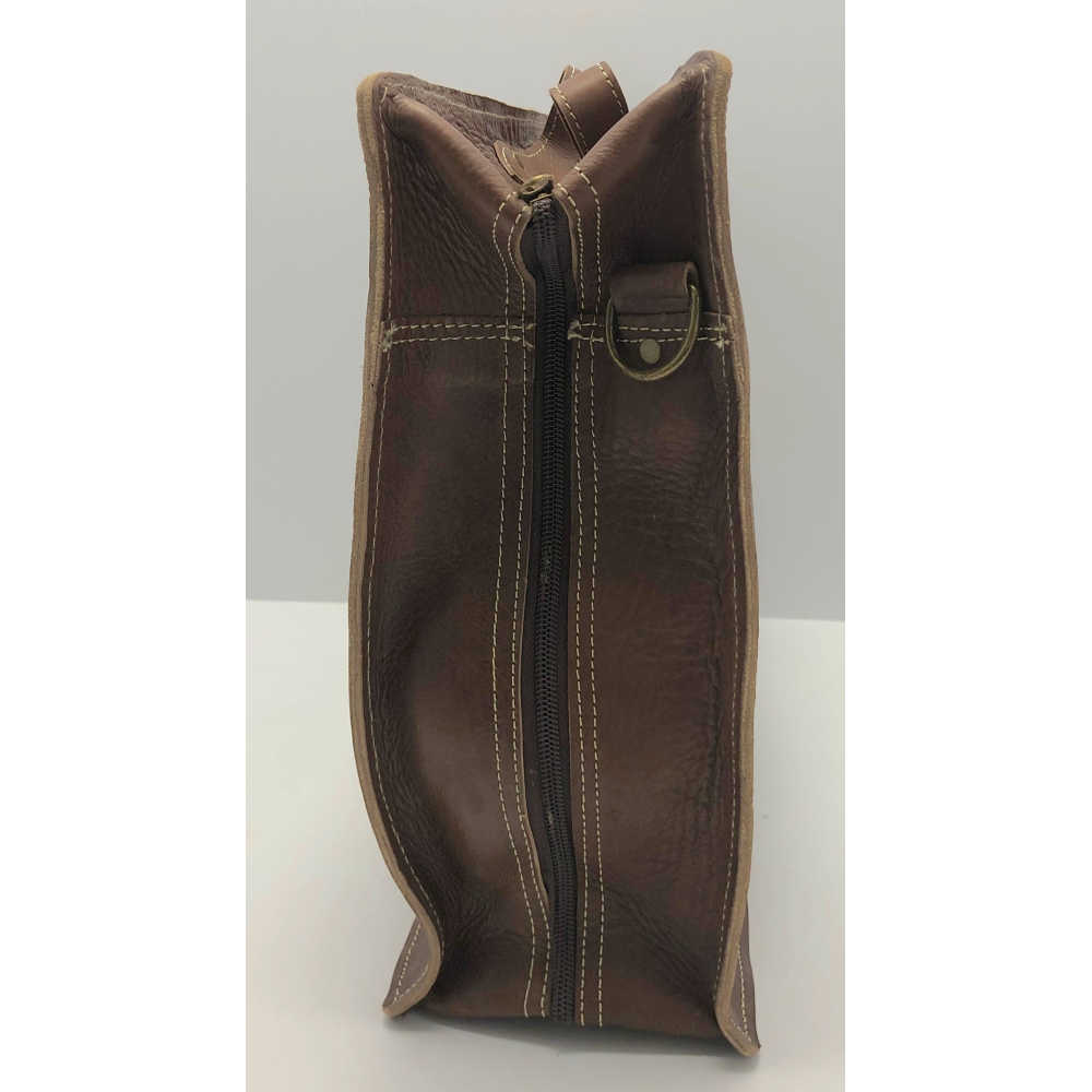 Cestovní taška kožená užší s dvěma krátkýma ušima jedním dlouhým nastavitelným (max. délka 68 cm). Taška má vpředu kapsu na přezku se zámečkem. Uvnitř je taška s podšívkou.