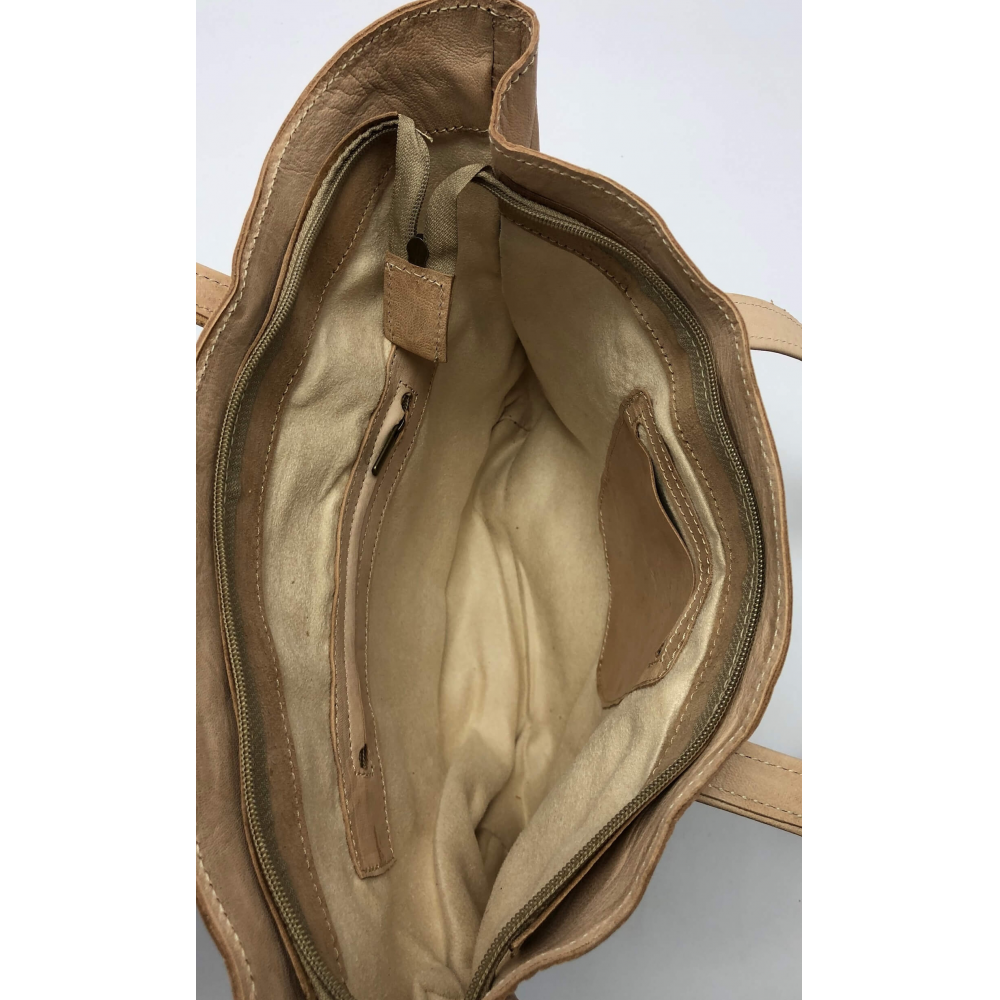 Elegantní a jednoduchá kožená dámská kabelka nadčasová, která nepodléhá módním trendům a tak si najde určitě místo ve Vašem šatníku na dlouhou dobu. Kabelka je ručně šitá z jemné kůže, Kabelka je hladká, má středně dlouhé uši (délka 25 cm), které jsou ke kabelce přidělány elegantně cvočky. Uvniř je kabelka s podšívkou, malou kapšičkou na zip na Vaše drobnosti a kapsička na mobilní telefon.