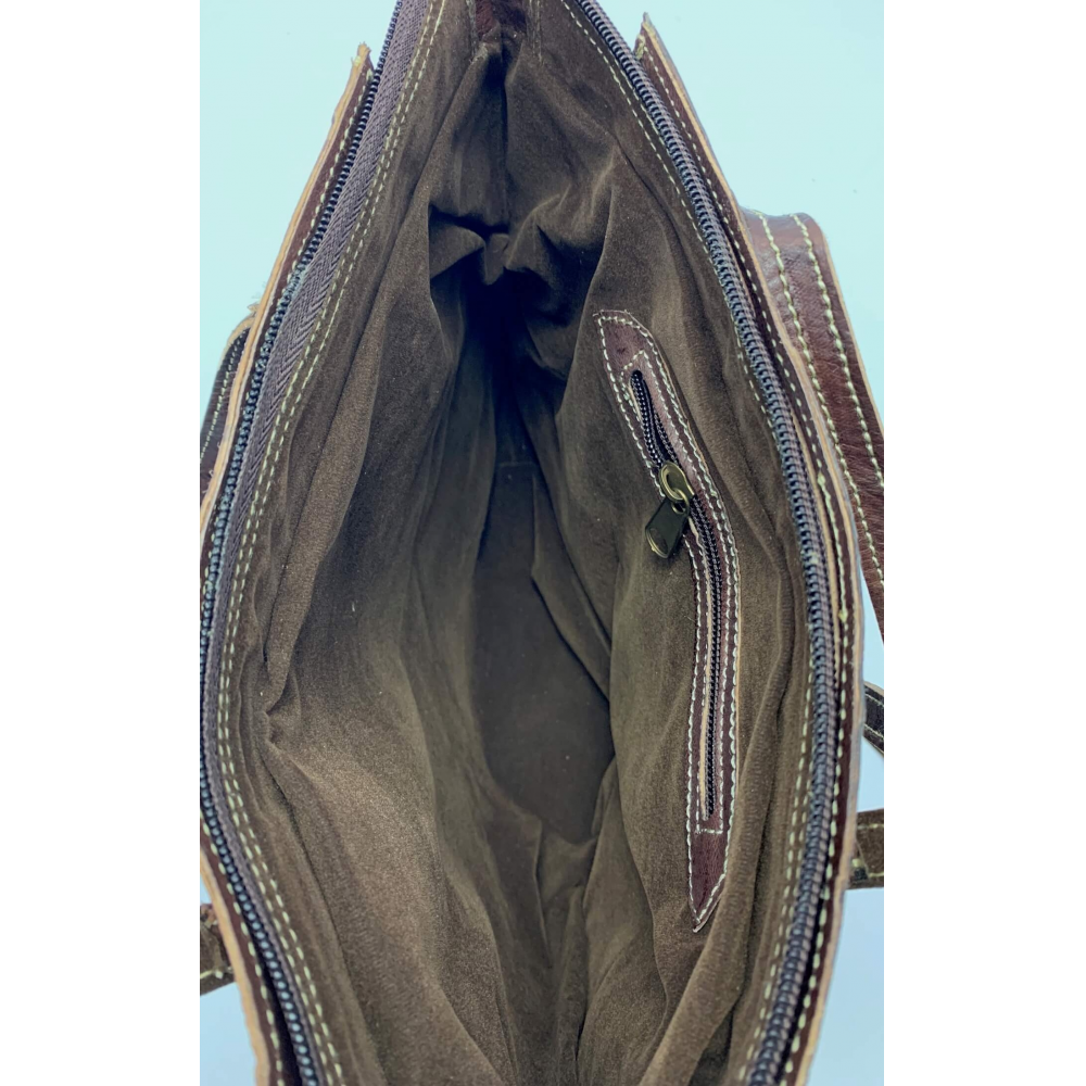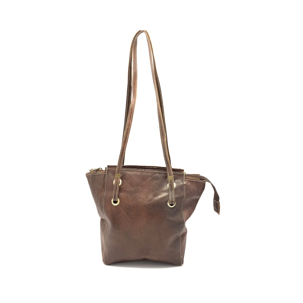 Elegantní a jednoduchá kožená dámská kabelka nadčasová, která nepodléhá módním trendům a tak si najde určitě místo ve Vašem šatníku na dlouhou dobu. Kabelka je ručně šitá z jemné kůže, Kabelka je hladká, má středně dlouhé uši (délka 38 cm), které jsou ke kabelce připevněny přez ozdobné kroužky v kabelce. Uvniř je kabelka s podšívkou a má malou kapsičku na zip z vnitřní strany na Vaše drobnosti a cennosti. Kabelka je zavírací na zip.