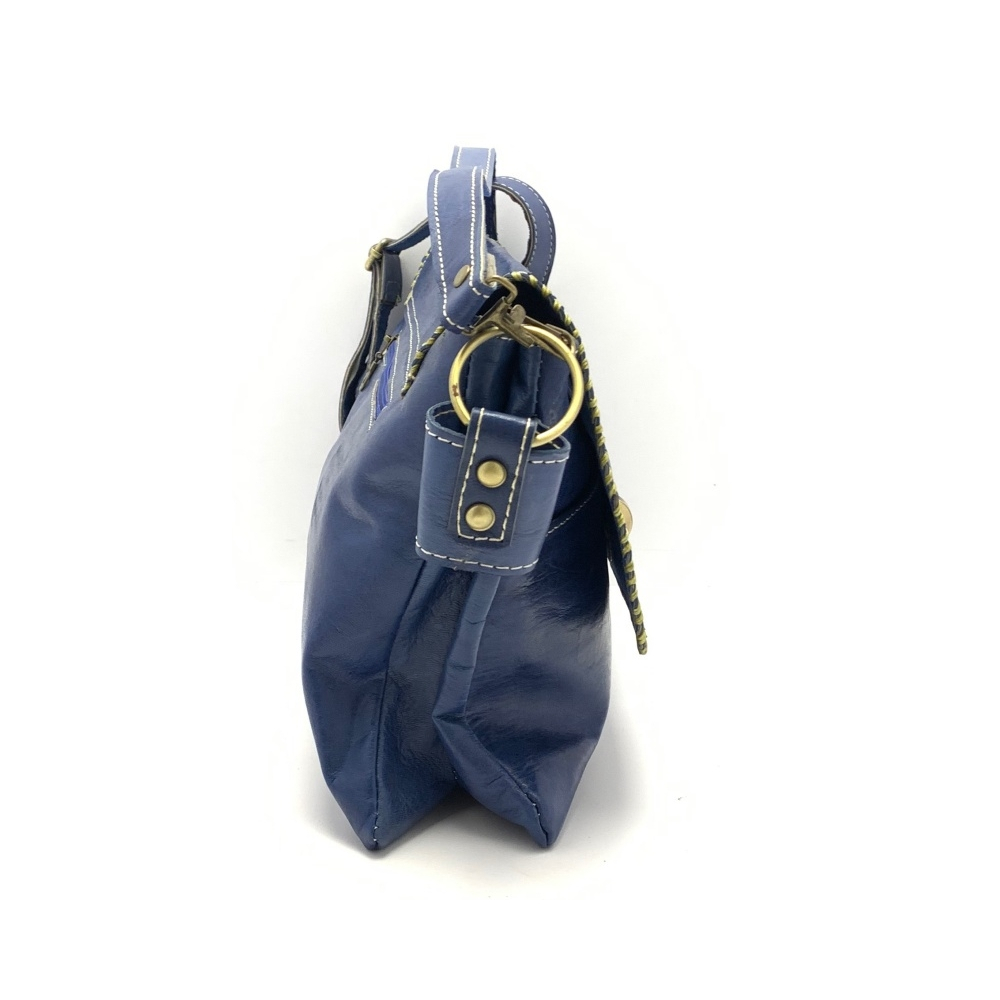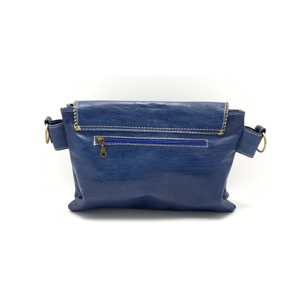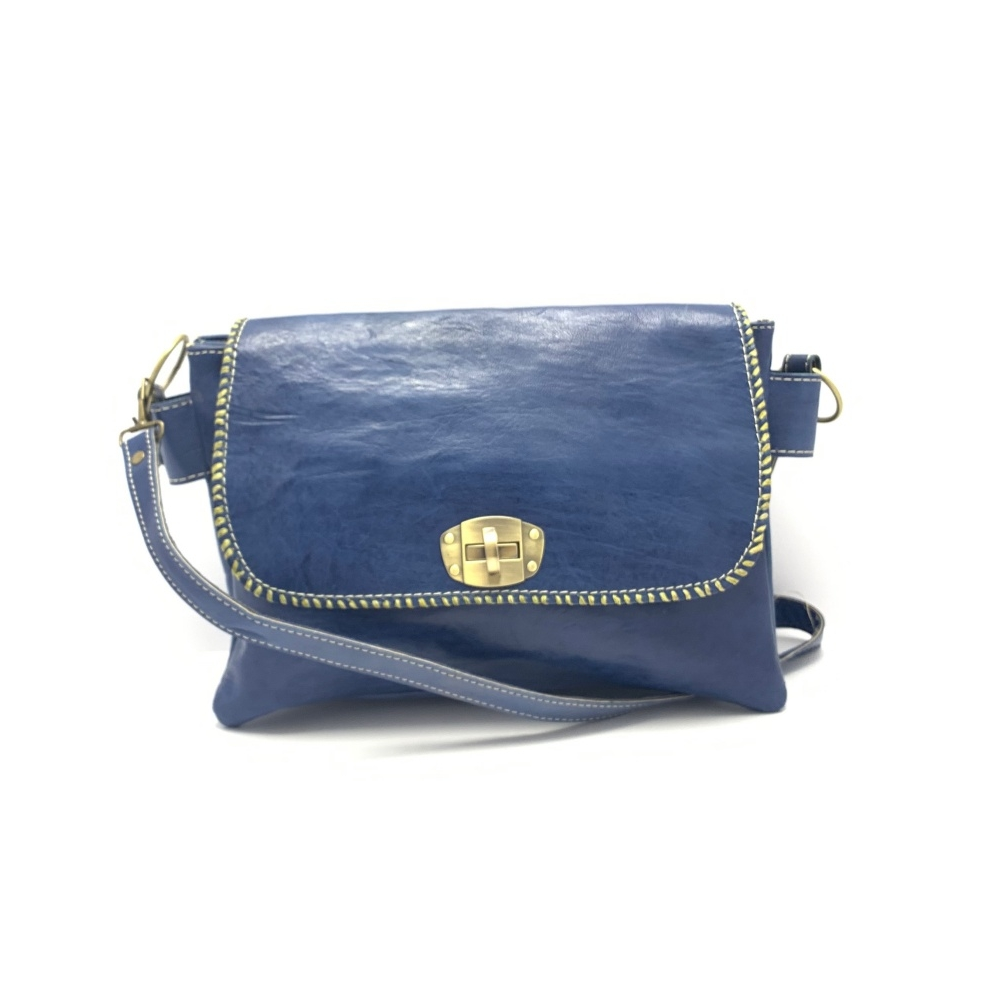 Dámská luxusní kožená kabelka ve tvaru psaníčka přes rameno je z ručně barvené kůže s ozdobným obšitím okolo víka kabelky.