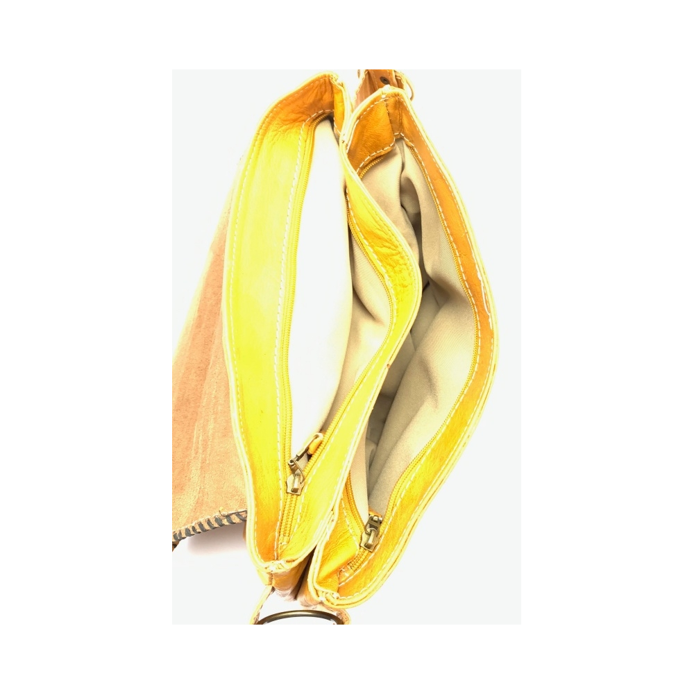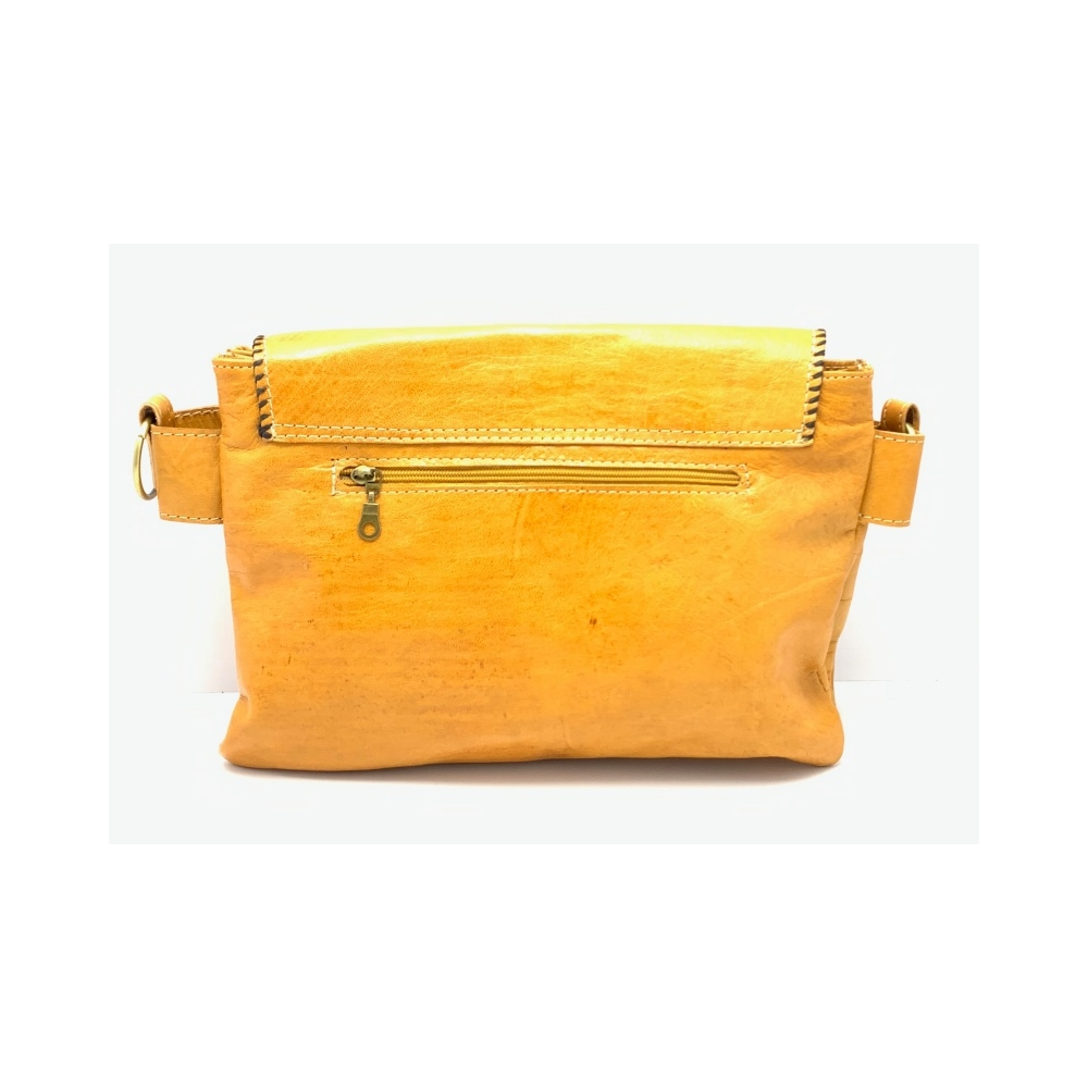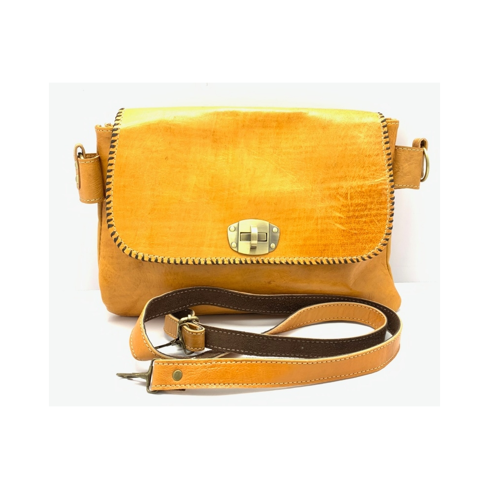 Dámská luxusní kožená kabelka ve tvaru psaníčka přes rameno je z ručně barvené kůže s ozdobným obšitím okolo víka kabelky.