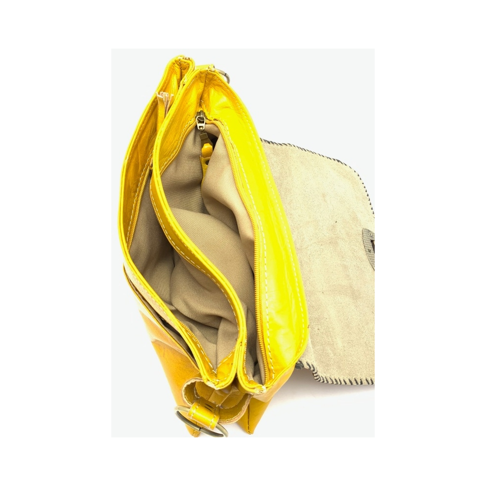 Elegantní luxusní kožená obdélníková přes rameno. Kabelka je z měkké hovězí kůže, velice příjemná na dotek. Kabelku je možno nosit na dlouhém uchu (max délka 130 cm), které je možno upravit na délku nebo je možno dlouhé ucho odepnout a nosit kabelku jako elegantní psaníčko v ruce. Kabelka je elegantně obšitá světlou nití, čímž působí velice nadčasově. Na zadní straně z venku má kabelka kapsičku na zip po celé délce zadní strany. Uvnitř je kabelka řešena jako dva samostatné oddělené prostory zapínací na zip. Celá kabelka má zavírání jako překlop zapínací na otočnou větší sponu, pod tímto překlopem je další malá kapšička. Kabelku můžete vzít k šatům nebo Vám dobře poslouží i jako doplněk k džínům.
