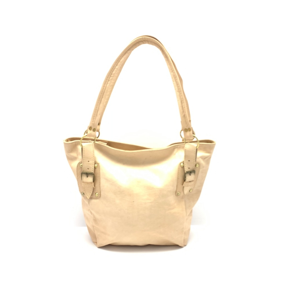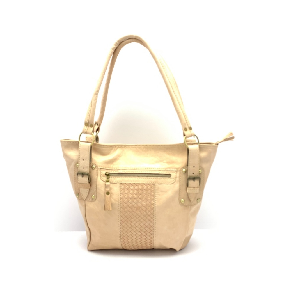 Dámská kožená kabelka z jemné hovězí kůže ručně šitá se středně dlouhýma ušima (délka 27 cm), takže můžete kabelku nosit pohodlně na rameni, v ruce nebo na předloktí. Délku uší je možno mírně korigovat, protože jsou přidělány ke kabelce na přezkách. Na přední straně v horní části má kabelka kapsu na zip s ozdobným střapcem na Vaše drobnosti nebo cennosti. Od této kapsy až dolů má kabelka pruh ozdobného průpletu, což ji čini velice krásnou a zajímavou. Zadní strana kabelky je hladká. Uvnitř má kabelka samozřejmě podšívku, na zadní vnitřní straně je kapsa na zip a na protější straně je kapsička na mobilní telefon. Kabelka je krásná a určitě doplní Vás šatník a bude Vaší ozdobou.