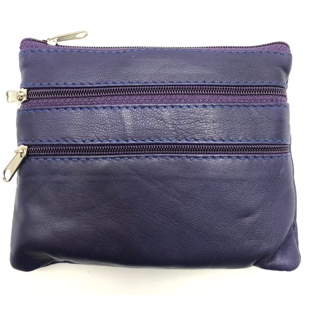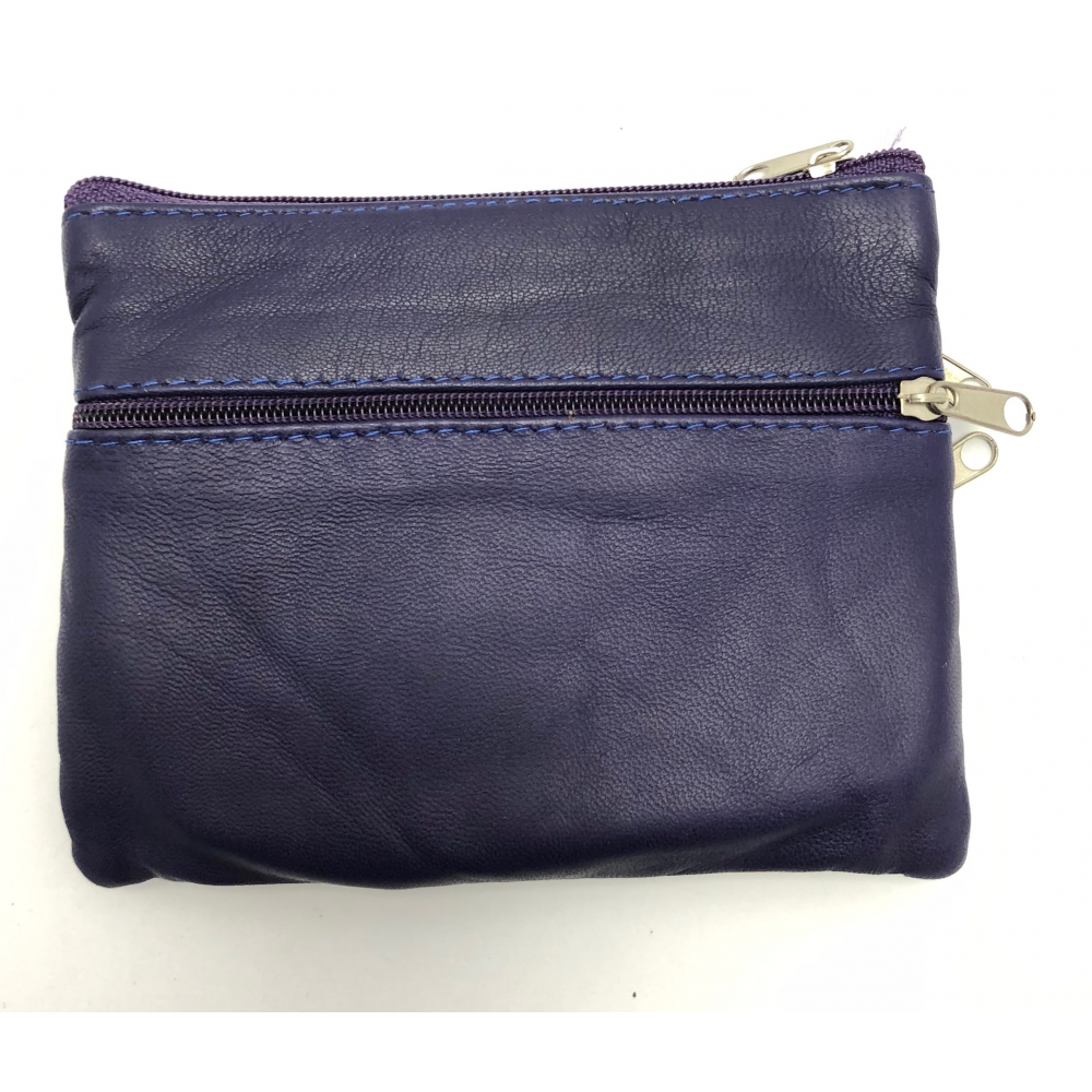 Malá kožená peněženka ručně šitá z příjemné měkké kůže. Peněženka je nahoře zapínací na zip. Z jedné strany má dvě kapsičky na zip z druhé strany má jednu kapsičku na zip.