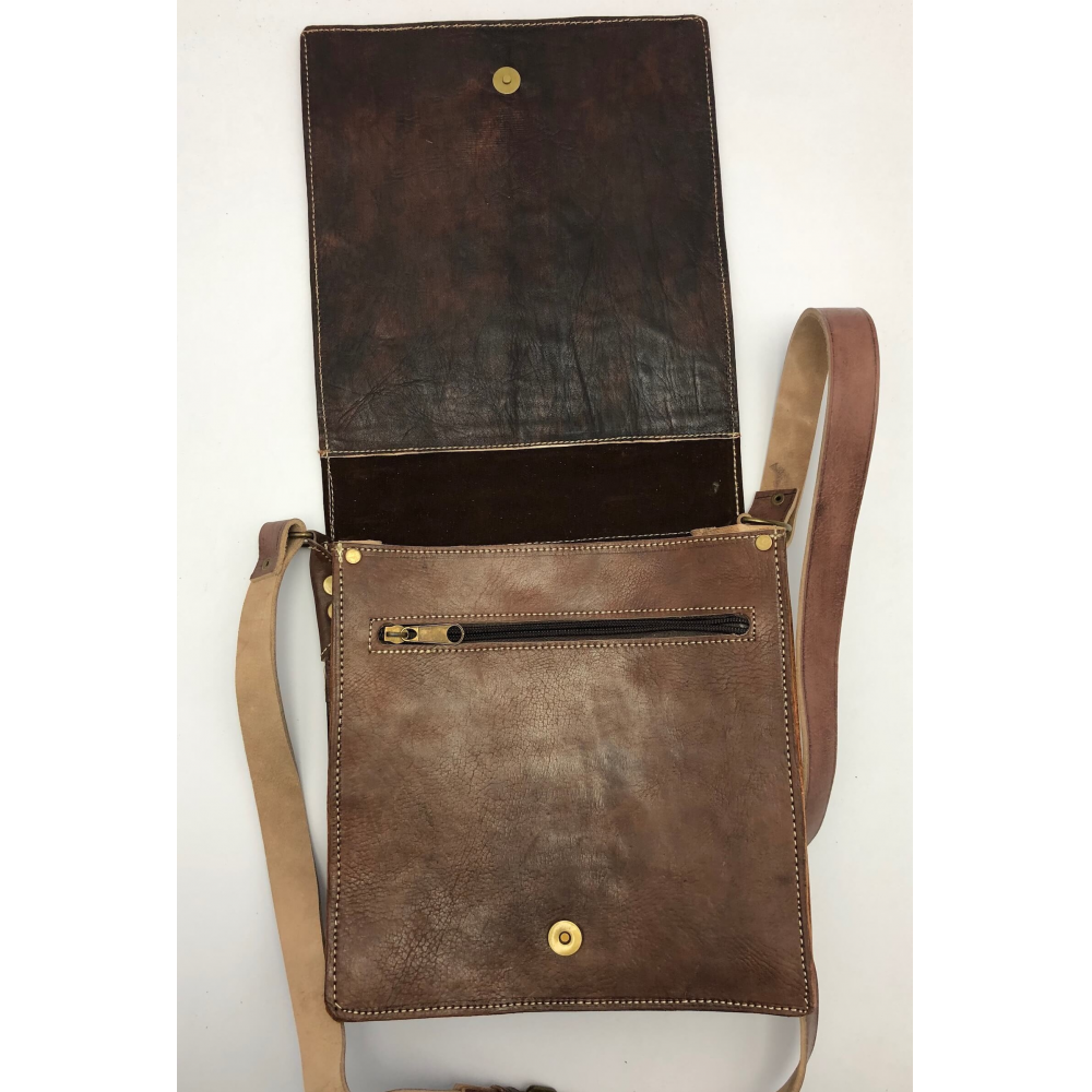 Krásně ručně zpracovaná unisexová taška z pevné kůže na dlouhé ucho (max 64 cm), které je nastvitelné. Jedná se o tašku ve tvaru čtverce s překlopem zapínací na patentku. Na zadní straně je kapsa na zip přes celou délku tašky. Uvnitř je taška řešena jako dva oddělené prostory a mezi nimi je kapsa na zip. Pod překlopem na přední straně tašky je kapsa přes celou tašku na zippro Vaše drobnosti a jiné věci, kde je budete mít dobře oddelené od ostatích věcí. Taška bude krásným Vaším doplňkem.