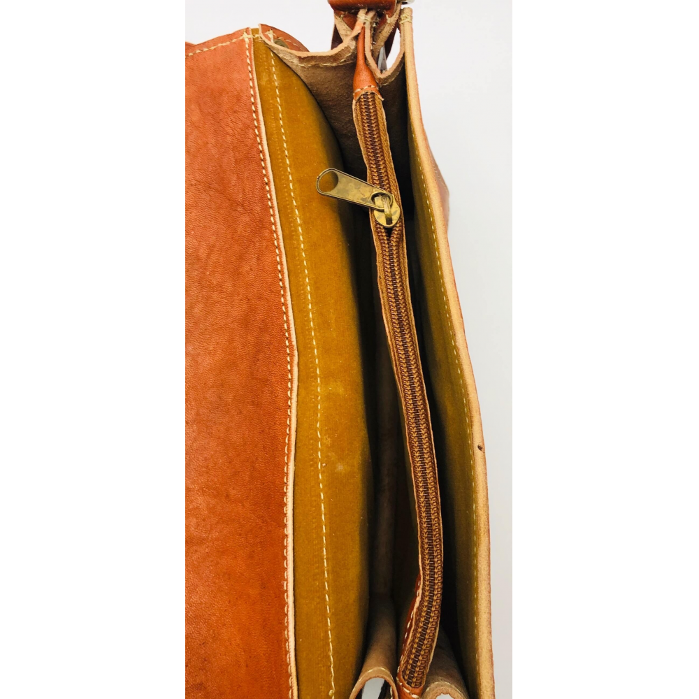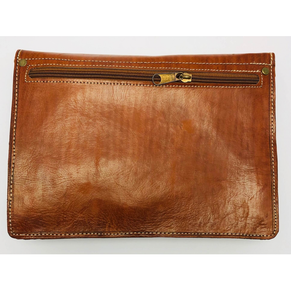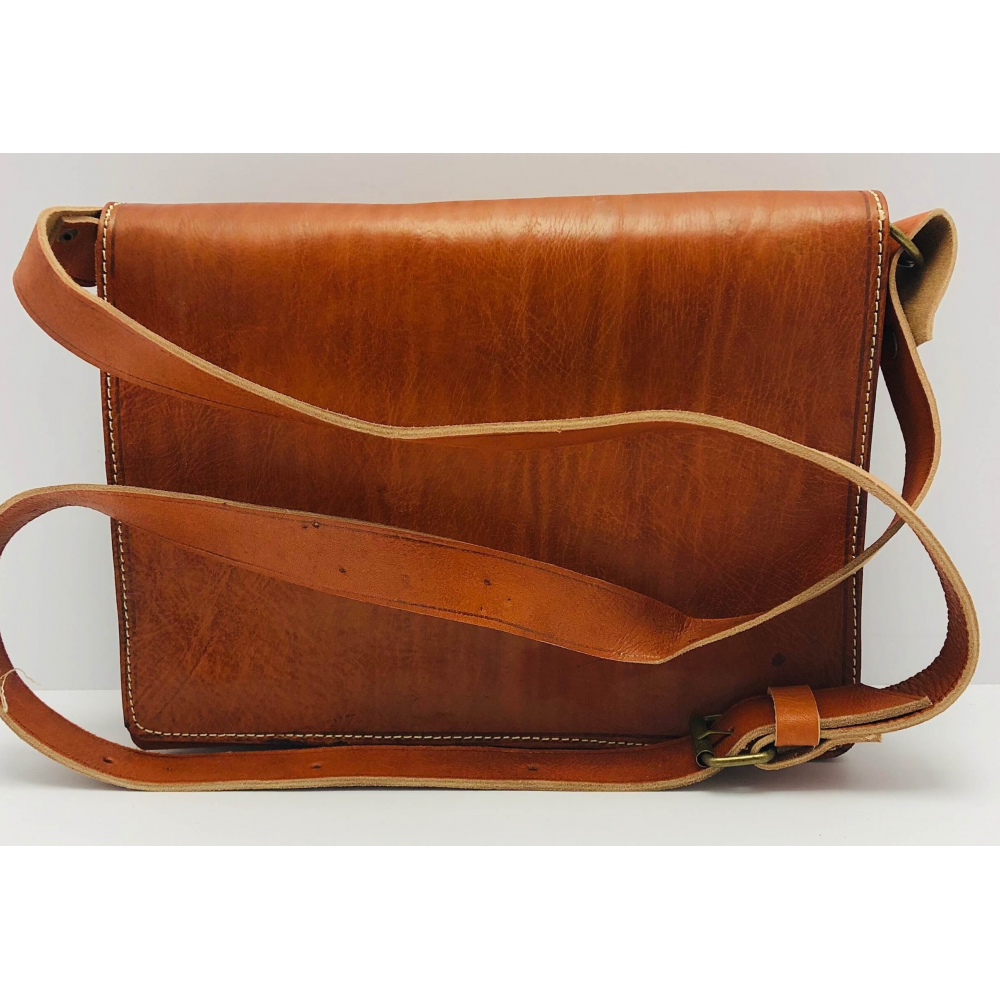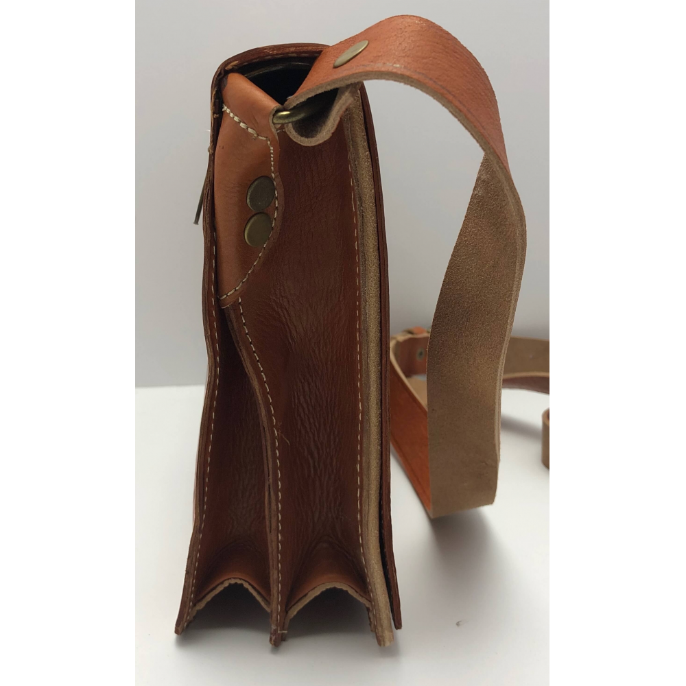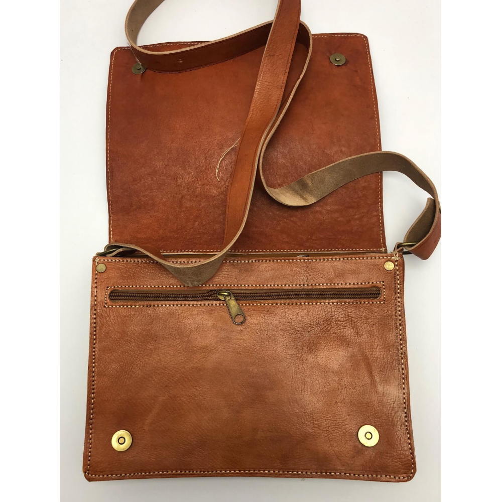 Krásně ručně zpracovaná unisexová taška z pevné kůže na dlouhé ucho (max 63 cm), které je nastvitelné. Jedná se o tašku ve tvaru obdelníku s překlopem zapínací na patentky. Na zadní straně je kapsa na zip přes celou délku tašky. Uvnitř je taška řešena jako jeden velký prostor, na zadní straně je kapsa na zip. Pod překlopem na přední straně tašky je kapsa přes celou tašku na zip pro Vaše drobnosti a jiné věci, kde je budete mít dobře oddelené od ostatích věcí. Taška bude krásným Vaším doplňkem.