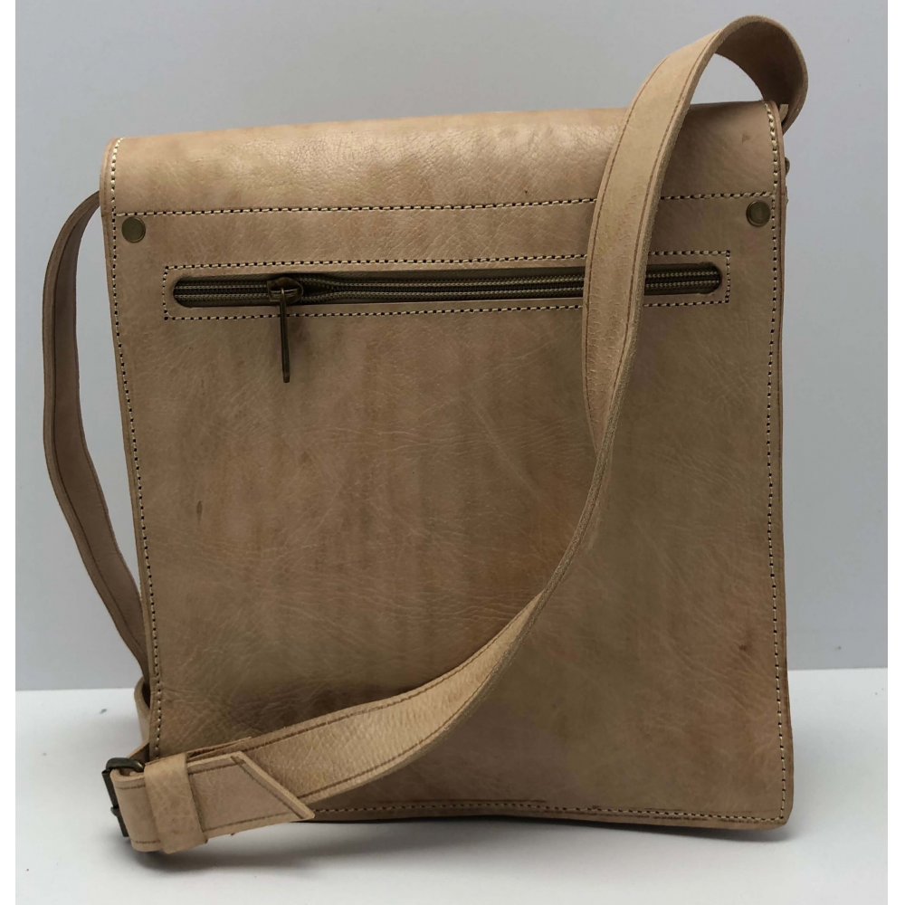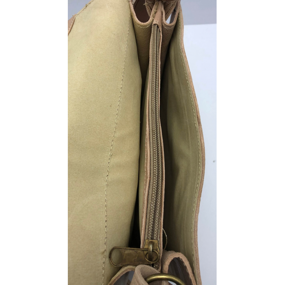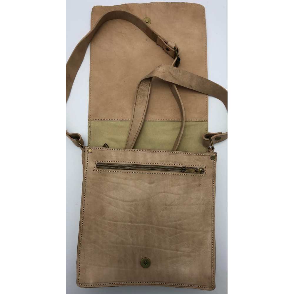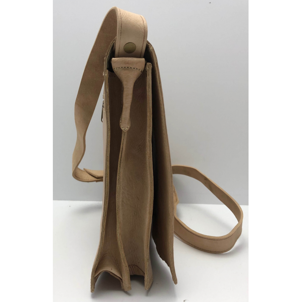 Krásně ručně zpracovaná unisexová taška z pevné kůže na dlouhé ucho (max 64 cm), které je nastvitelné. Jedná se o tašku ve tvaru čtverce s překlopem zapínací na patentku. Na zadní straně je kapsa na zip přes celou délku tašky. Uvnitř je taška řešena jako dva oddělené prostory a mezi nimi je kapsa na zip. Pod překlopem na přední straně tašky je kapsa přes celou tašku na zippro Vaše drobnosti a jiné věci, kde je budete mít dobře oddelené od ostatích věcí. Taška bude krásným Vaším doplňkem.