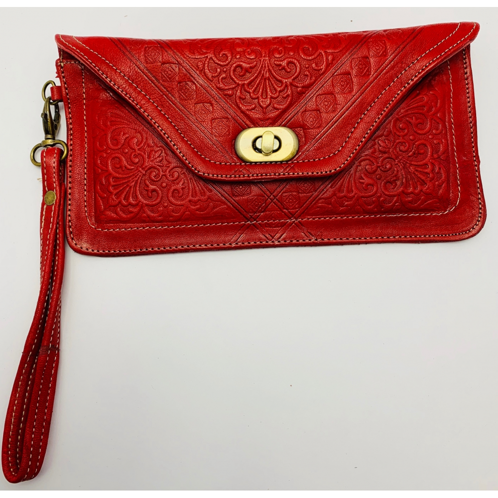 Dámská kožená malá kabelka do ruky, tzn. psaníčko. Kabelka je z příjemné měkké kůže ručně šitá, po celé přední části má mačkaný vzor. Přes celou délku zadní části kabelky z venkovní části je kapsa na zip. Kabelka je zavírací na ozdobný otočný knoflík. Kabelku můžete nosit buď navlečenou na ruce na poutku nebo můžete poutko odepnout a nosit jako tzv. psaníčko v ruce. Uvnitř je kapsa na zip a kapsa na Vaše doklady a cennosti. Kabelku můžete také použít jako tzv. dokladovku a dát si do ní svoje cennosti a vložit do svojí kabelky. Určitě bude krásným modním doplňkem, pokud se pro ní rozhodnete.