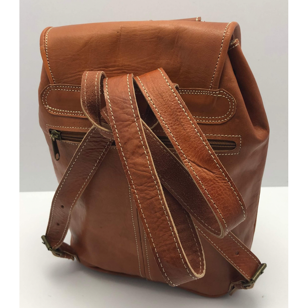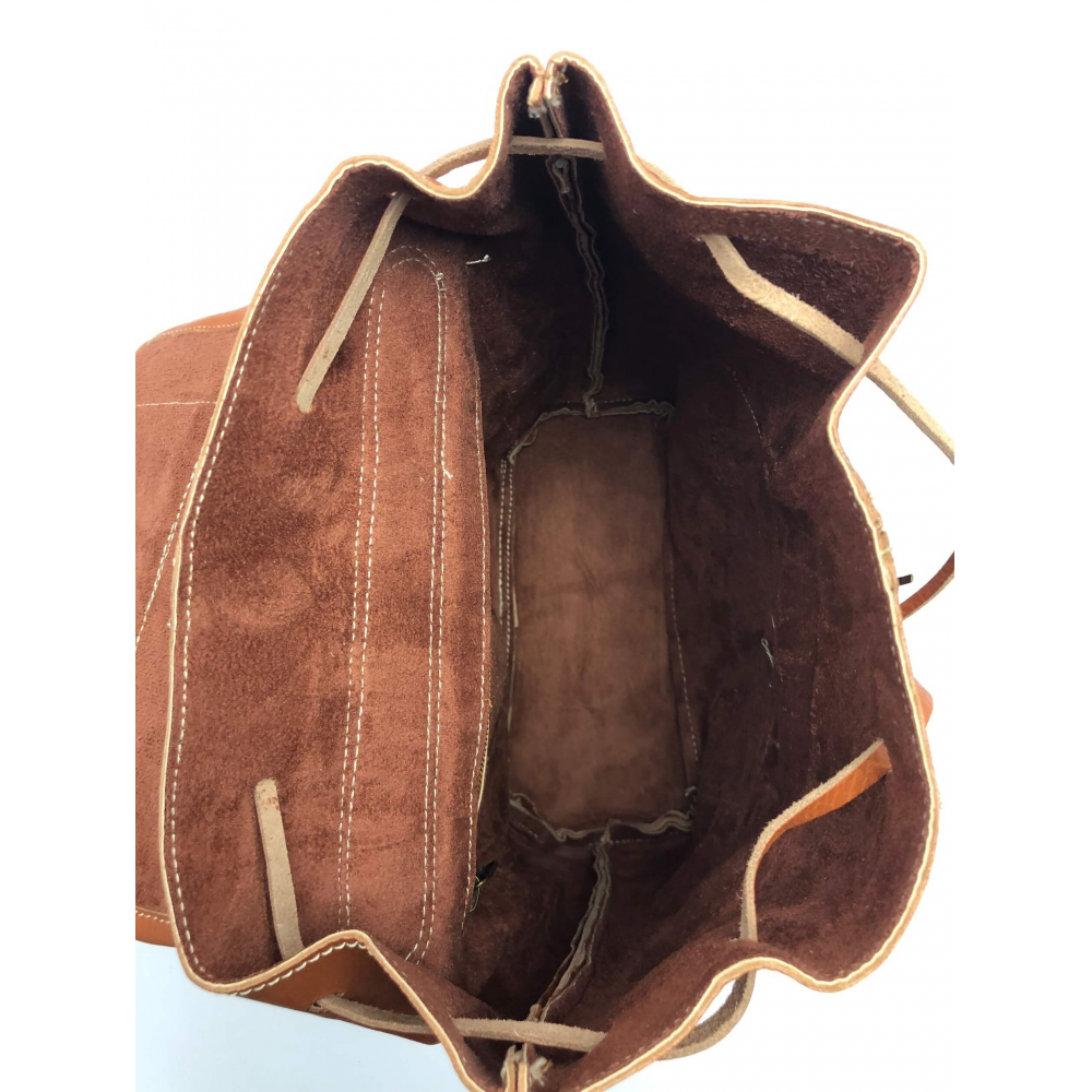 Kožený batoh střední velikosti se dvěma popruhy s nastavitelnou velikostí (max délka 36 cm) tloušťka kůže 9 mm. Batoh má jednu velkou vnitřní kapsu, stahování nahoře na koženou tkaničku, s překlopem, který je zavírací na přezku. Nahoře na překlopu je malá kapsička na přezku, ve spodní části batohu na přední straně je kapsa na zip, na které je ještě malá kapsička zapínací na přezku.