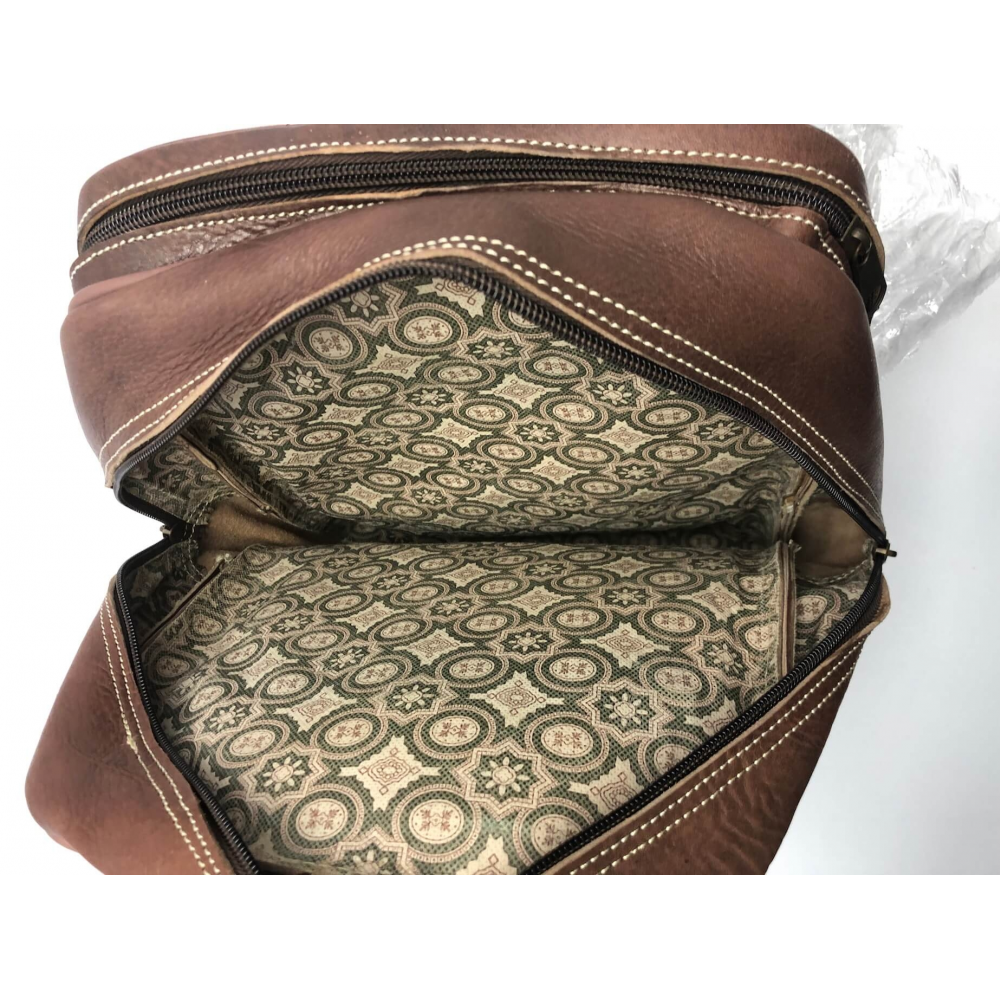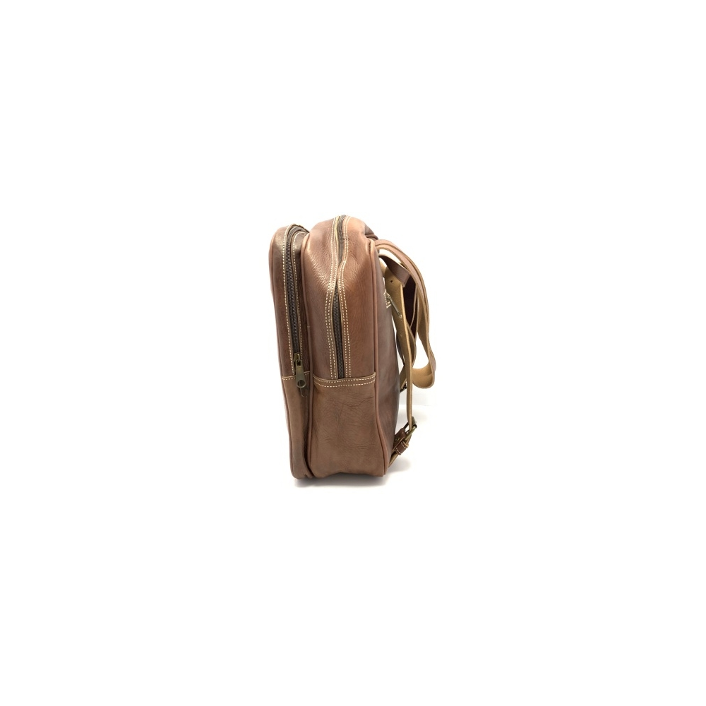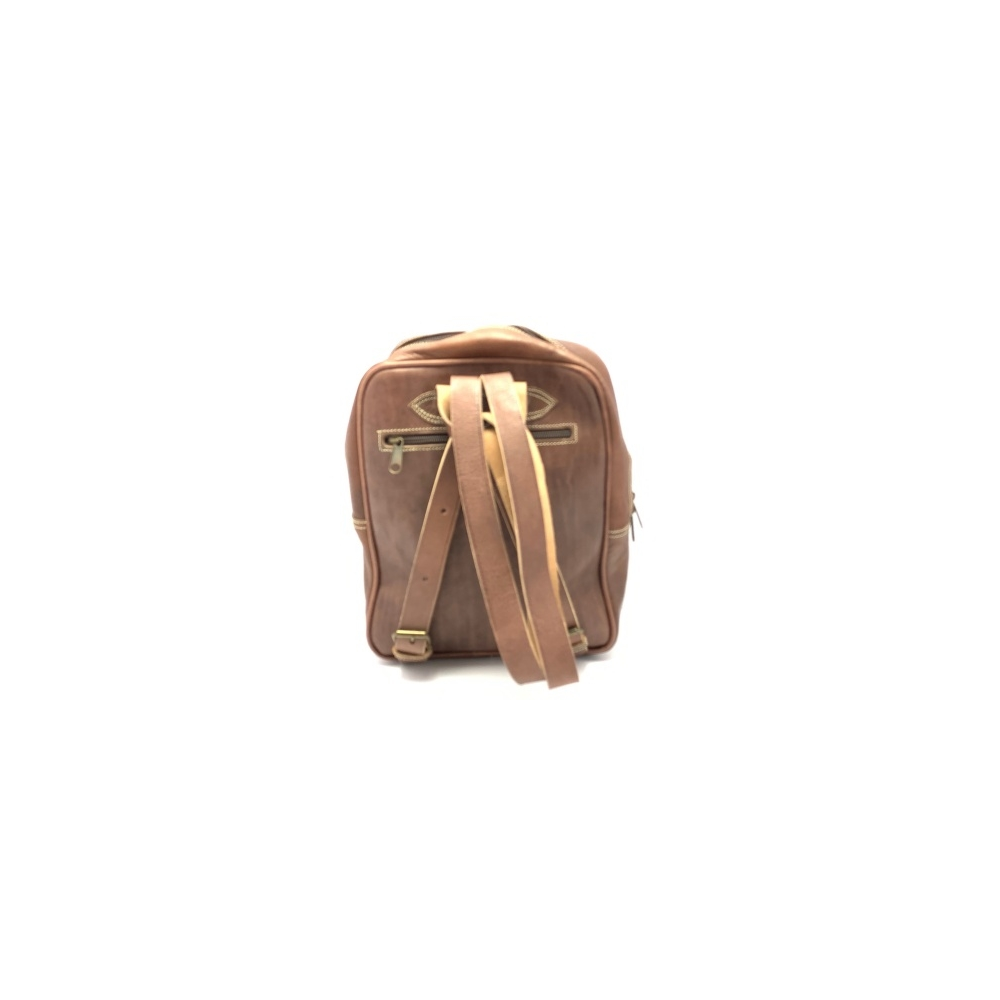 Batoh střední velikosti z kůže se dvěma nastavitelnými popruhy (max délka 45 cm). Batoh má podšívku a uvnitř malou kapsičku na zip na zadní straně batohu. Batoh je koncipován se zavíráním na zip - jeden větší prostor a jeden menší. Další uzavírací kapsička na zip je na čelní straně batohu.