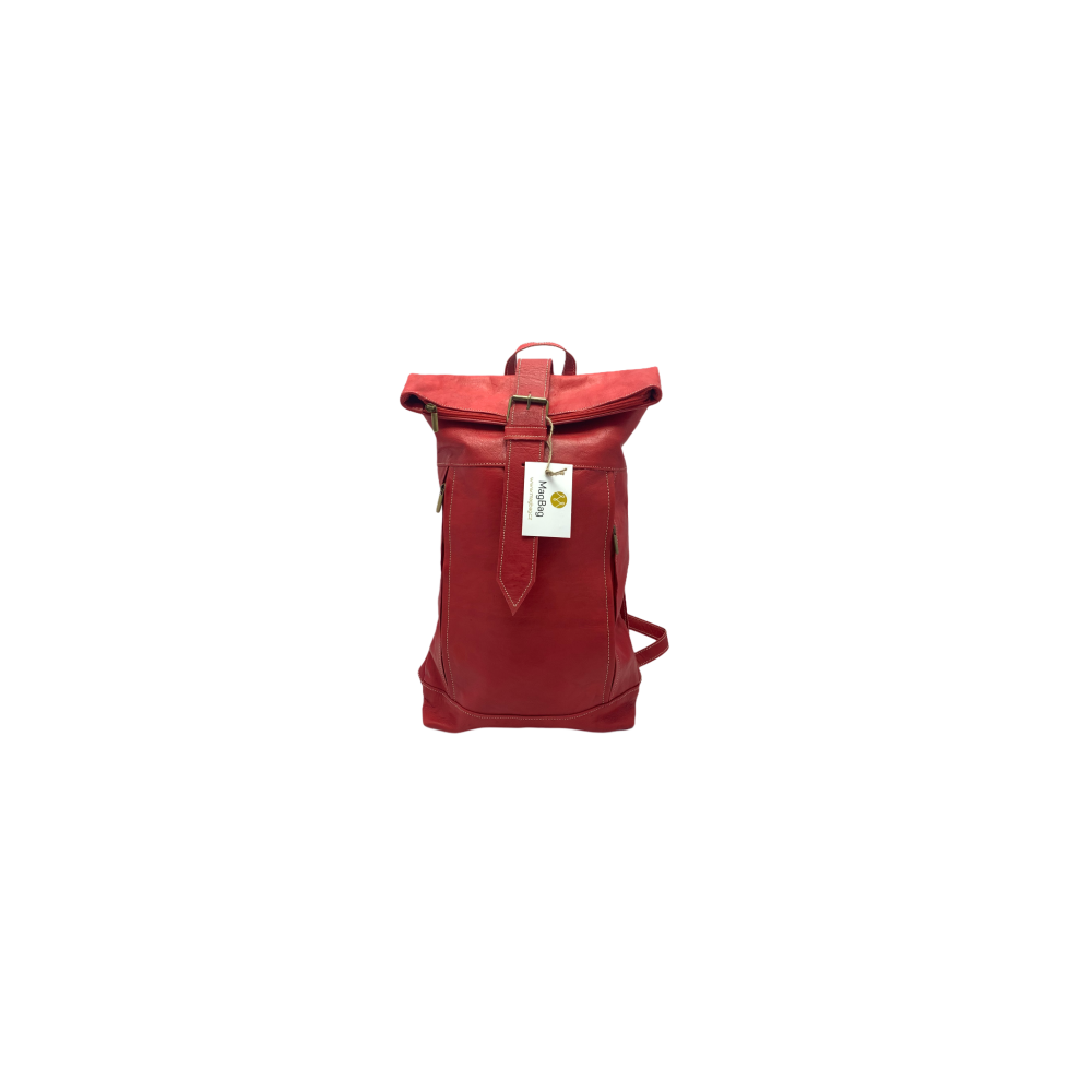 Kožený batoh široký pásek malý červený