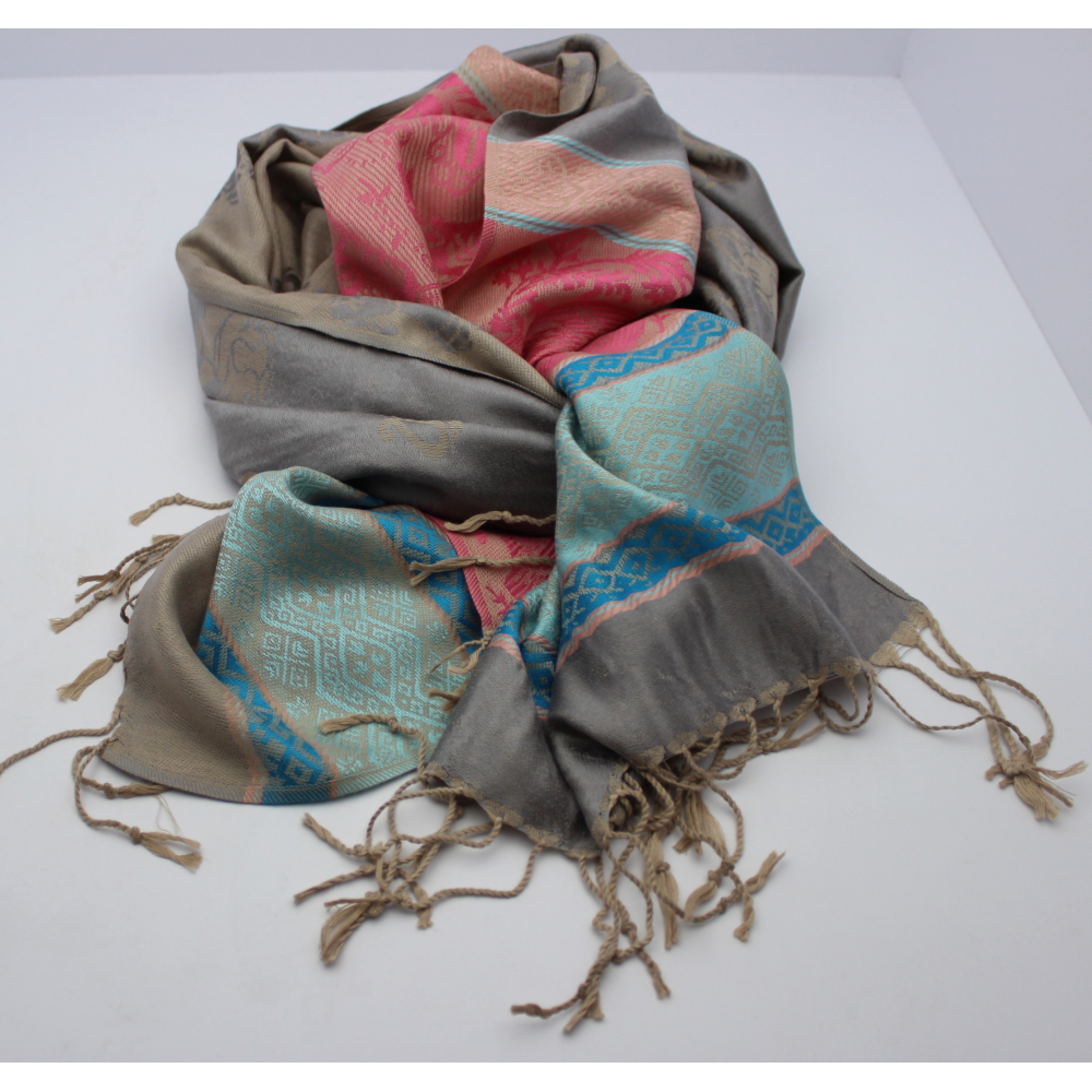 Krásná pashmína, která zahřeje v chladných dnech Váš krk Vám bude příjemným společníkem a doplňkem nejen v zimním období. Složení: směs materiálů
